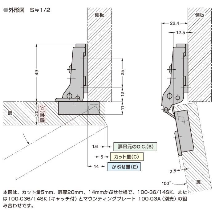 Lamp スライド丁番 100 C36 14sk カップ径f35 4分の3かぶせ キャッチ付 100 C36 14 リプレ ヤフー店 通販 Yahoo ショッピング